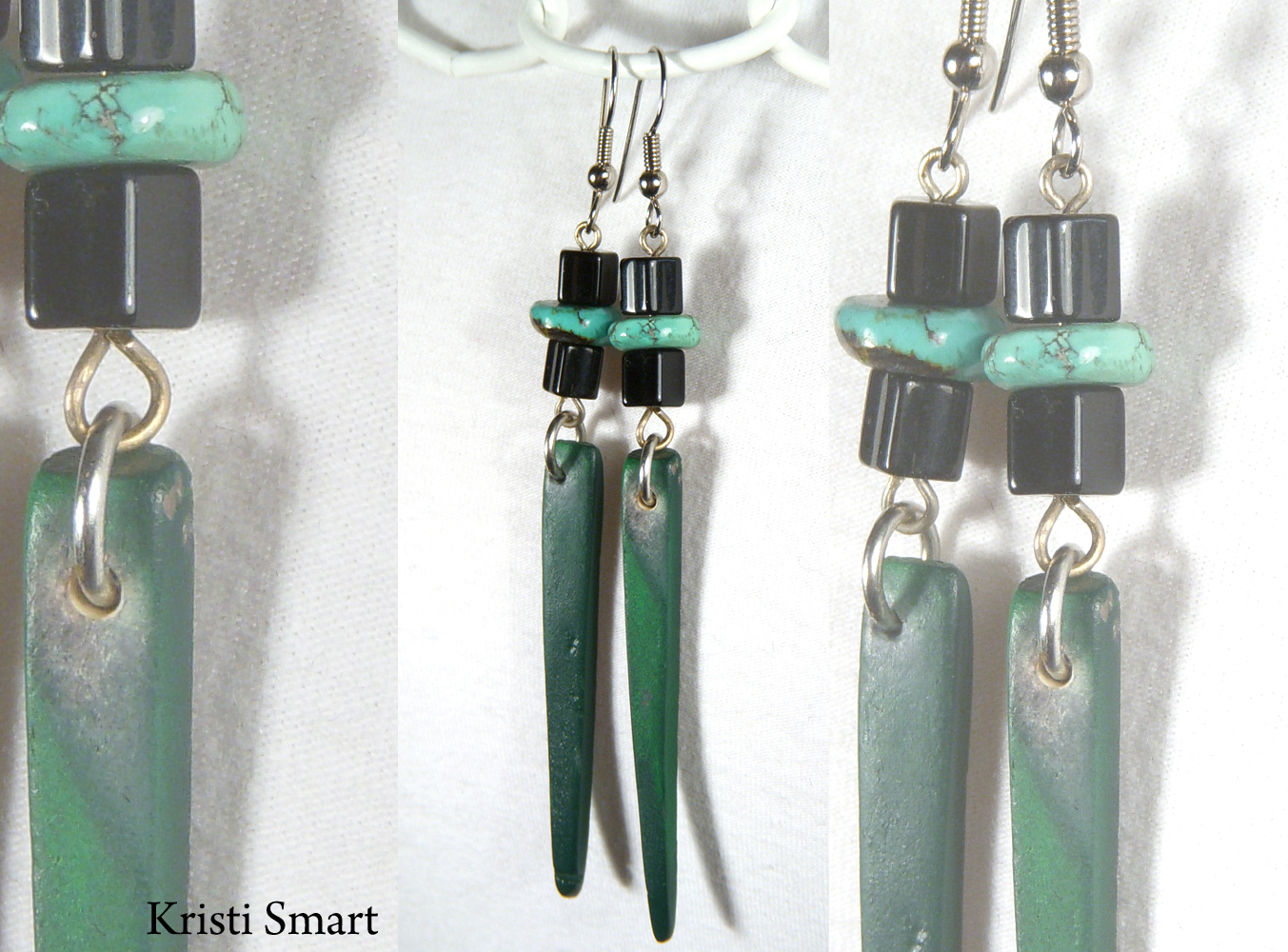 Super long dangly statement earrings. Suitable for men and women. Get your pirate on. Wear these stabby turquoise colored spikes with pride.