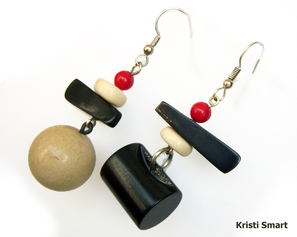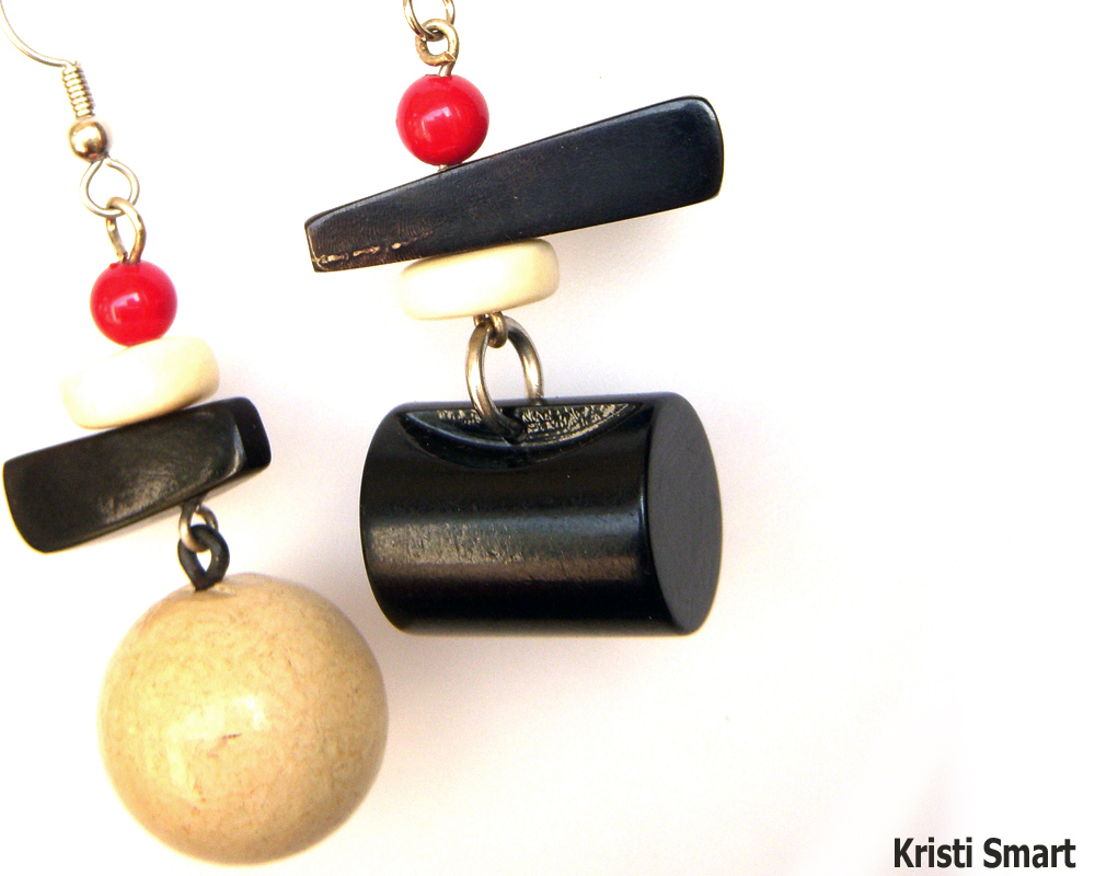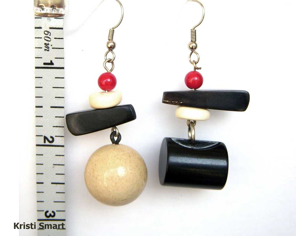 Small drama. Modernist contrasting earrings made from vintage parts. This pair is extra special.
