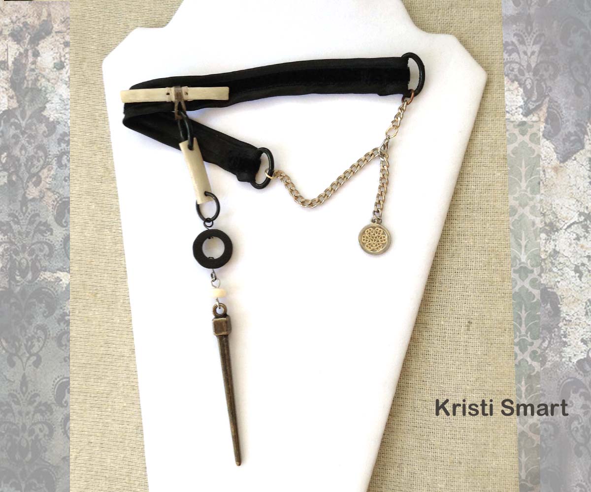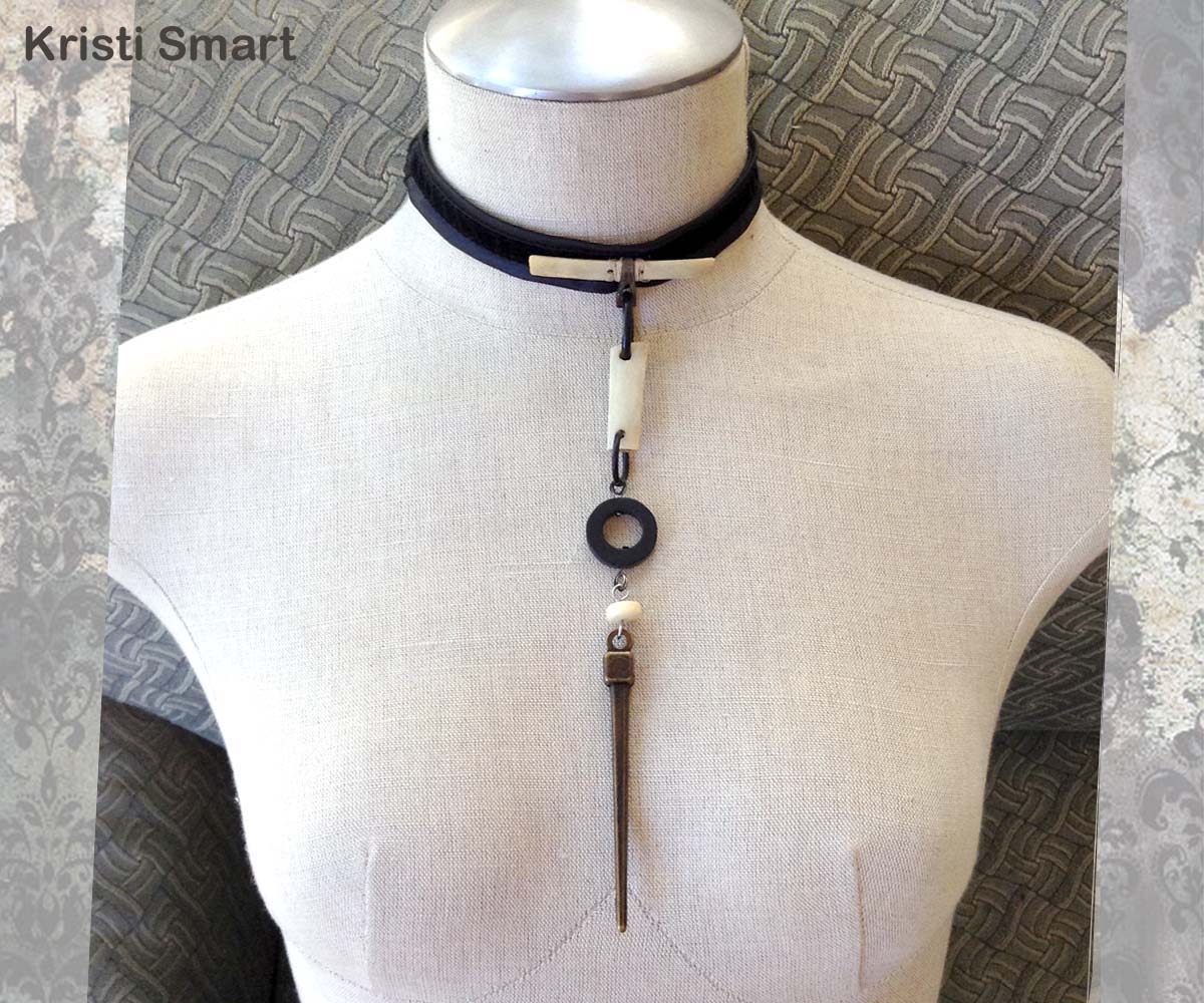 Gorgeous bone, metal and velvet choker for the slave or master in your life.