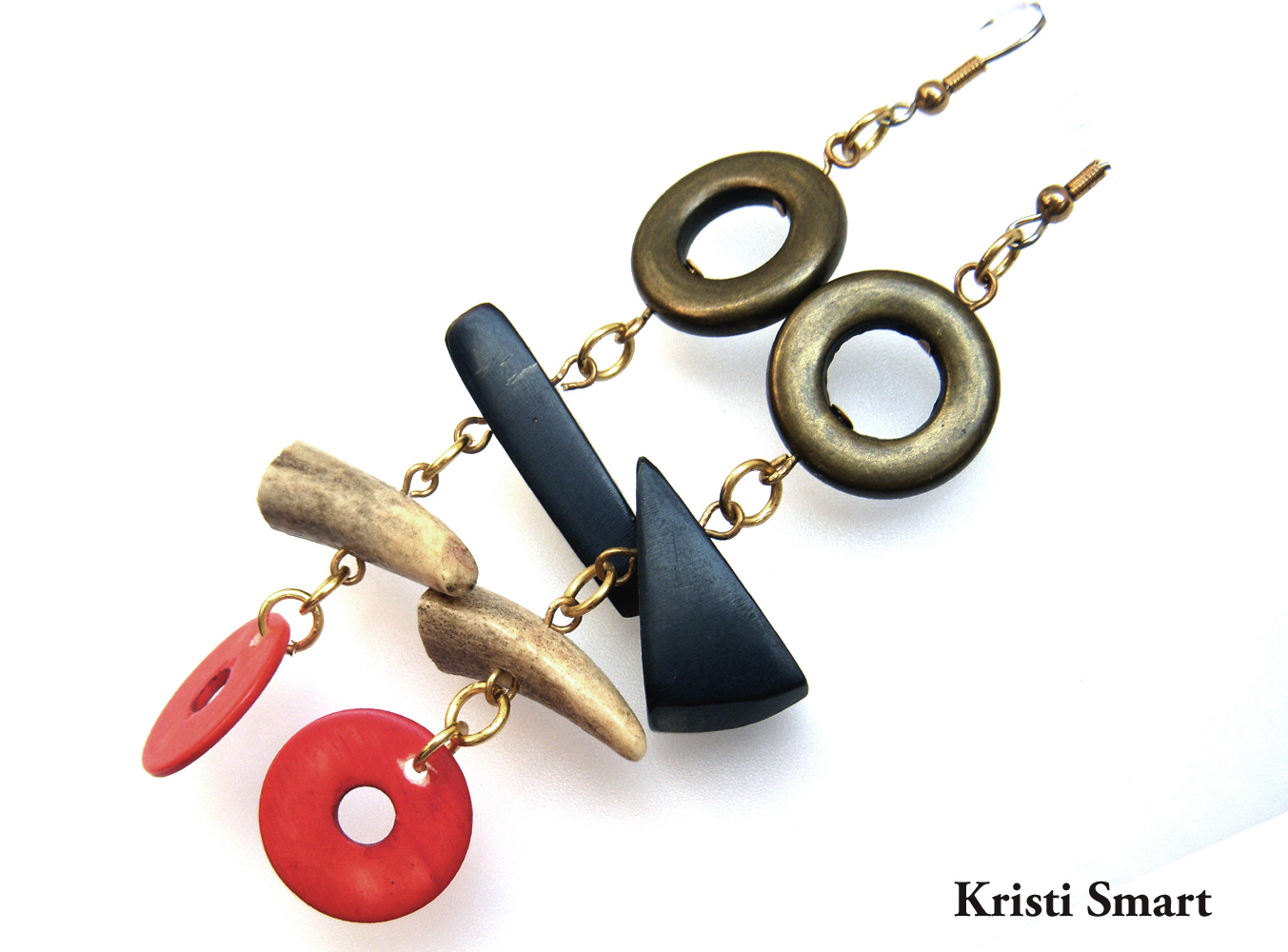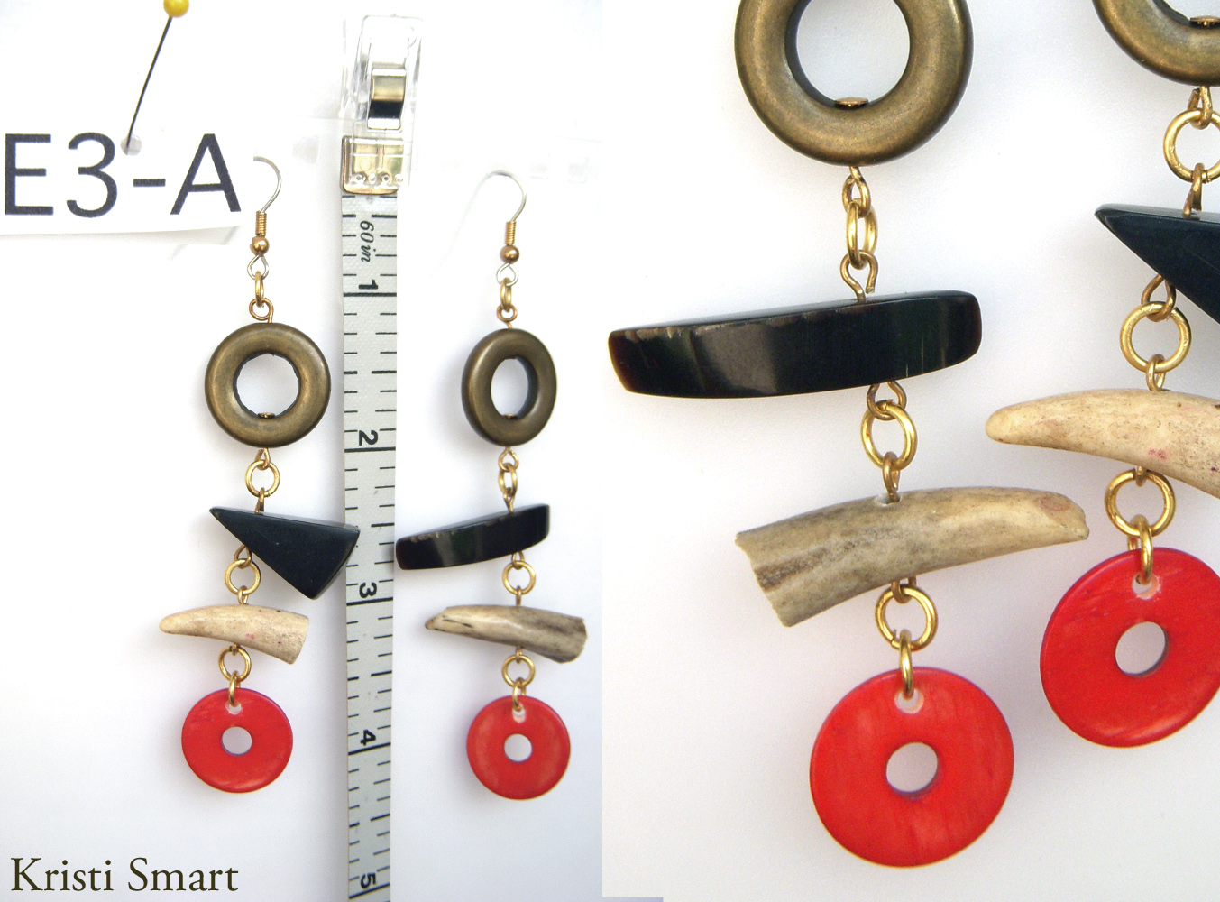Long dramatic earrings. Made from bone, horn and vintage rings. They measure 4 1/2 inches from top to bottom.